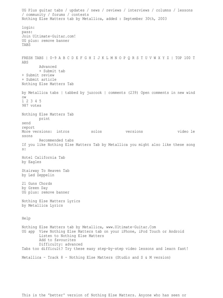 Metallica Nothing Else Matters Guitar Tab 2yamaha Com
