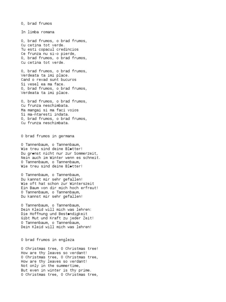 O Brad Frumos Italiana Engelza Romana Germana Youtube