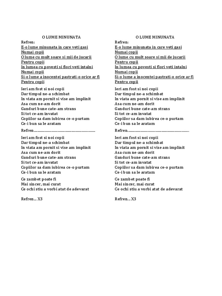 O Lume Minunata Versuri