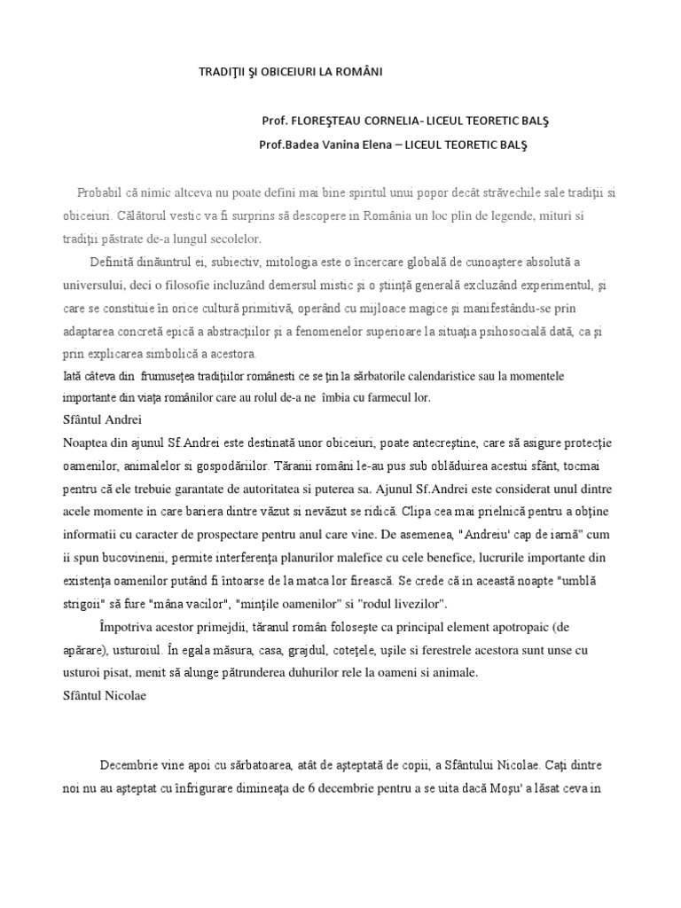 Obiceiuri Si Traditii In Cultura Romaneasca Referat Clopotel Ro Doc Obiceiuri Si Traditii In Cultura Romaneasca Lumea Din Care Face Parte Taranul Course Hero