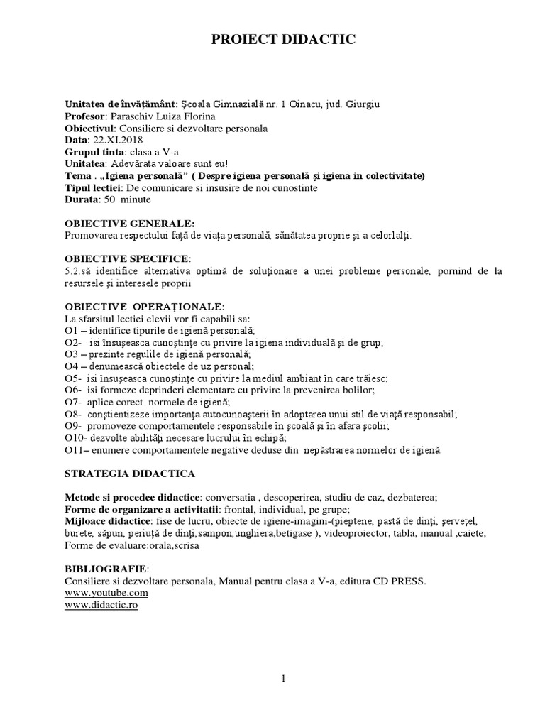 Https Www Nextclass Ro Wp Content Uploads 2018 10 Proiect Didactic E2 80 9e Reguli De Igien C4 83 Personal C4 83 E2 80 9d Pdf