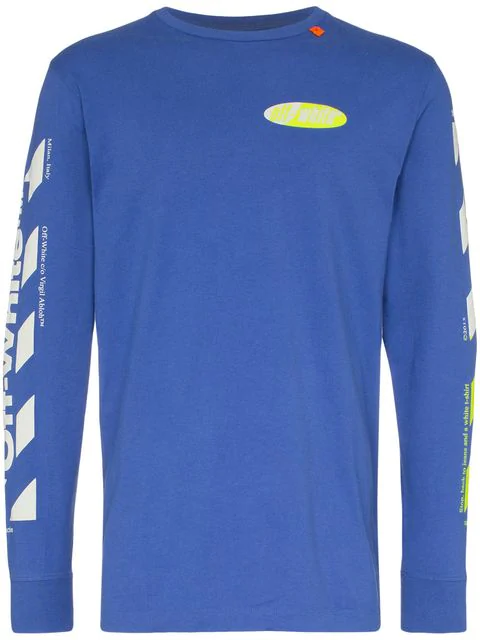 Off White Logo Print Cotton Jersey T Shirt In Blue Modesens