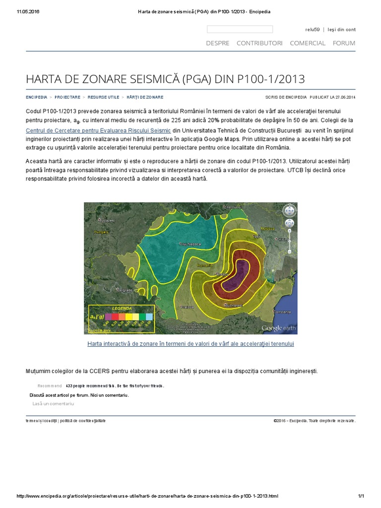 Noua Harta De Zonare Seismică Conform P100 1 2013 Encipedia