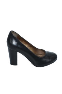 Pantof De Culoare Negru Din Piele Cu Varf Rotund Si Toc Inalt Gros 36 38 Okazii Ro