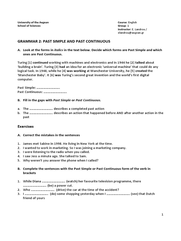 Past Simple And Past Continuous Exercises Text Exemple De Texte