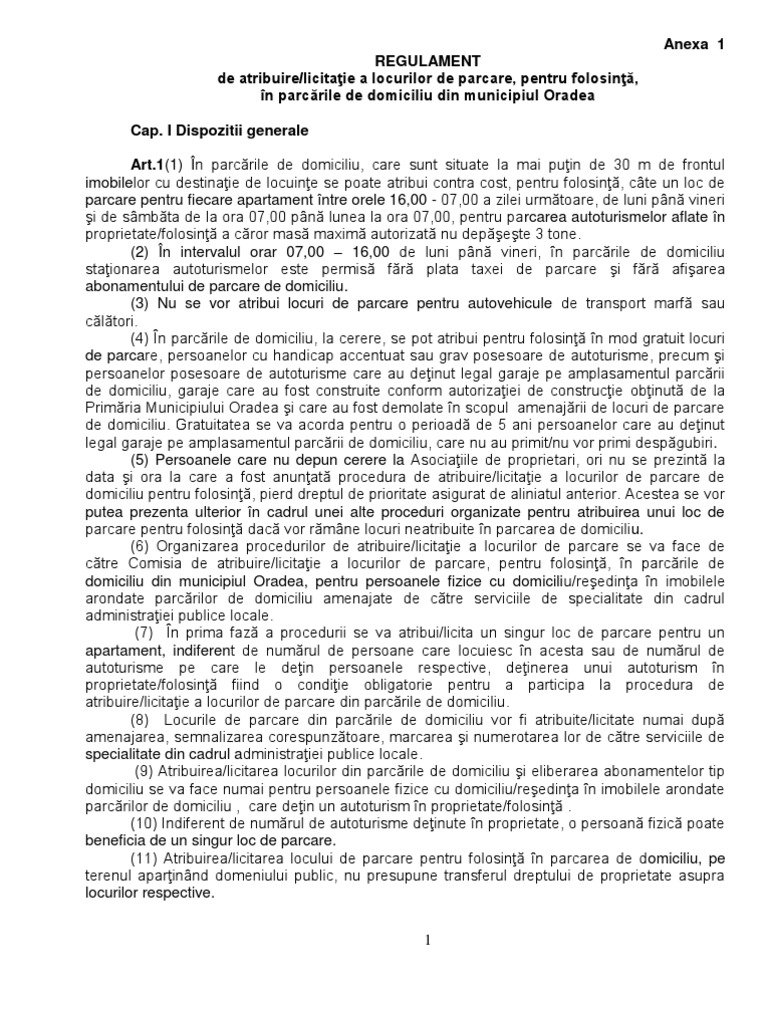 Regulament Parcari De Domiciliu