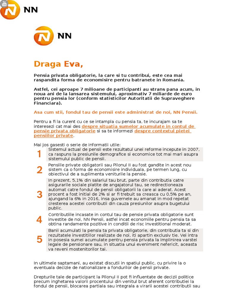 Scrisoare Nn Pensii Refeirtoare La Posibilitatea Nationalizarii Pilonului