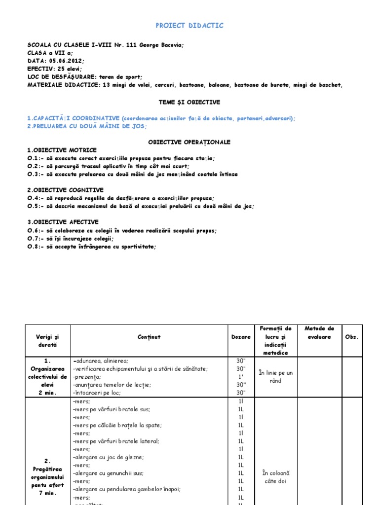 Proiect Didactic Ed Fizica Si Sport Clasa A Vii A
