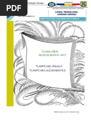Free Clasa Pregătitoare Model De Planificare Anuală Detaliată