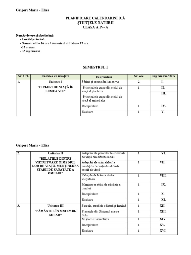Planificare Calendaristică Proiectele Unităților 2 Clasa A Iii A Planificare Calendaristică