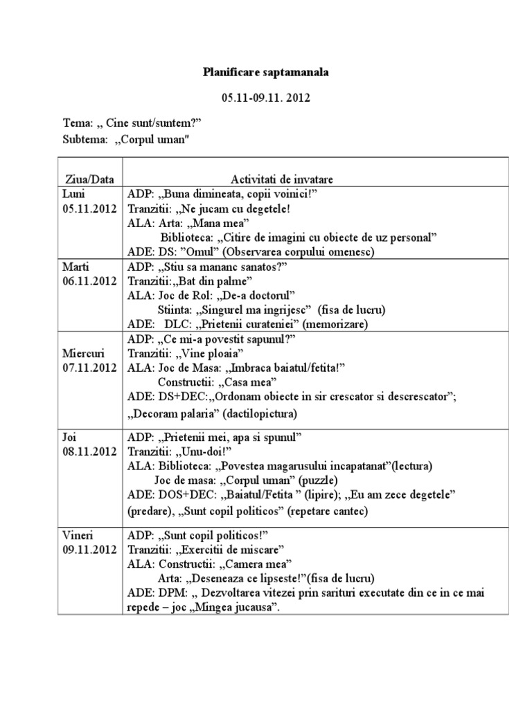 Planificare Saptamanala Conform Noului Curriculum 1 Doc
