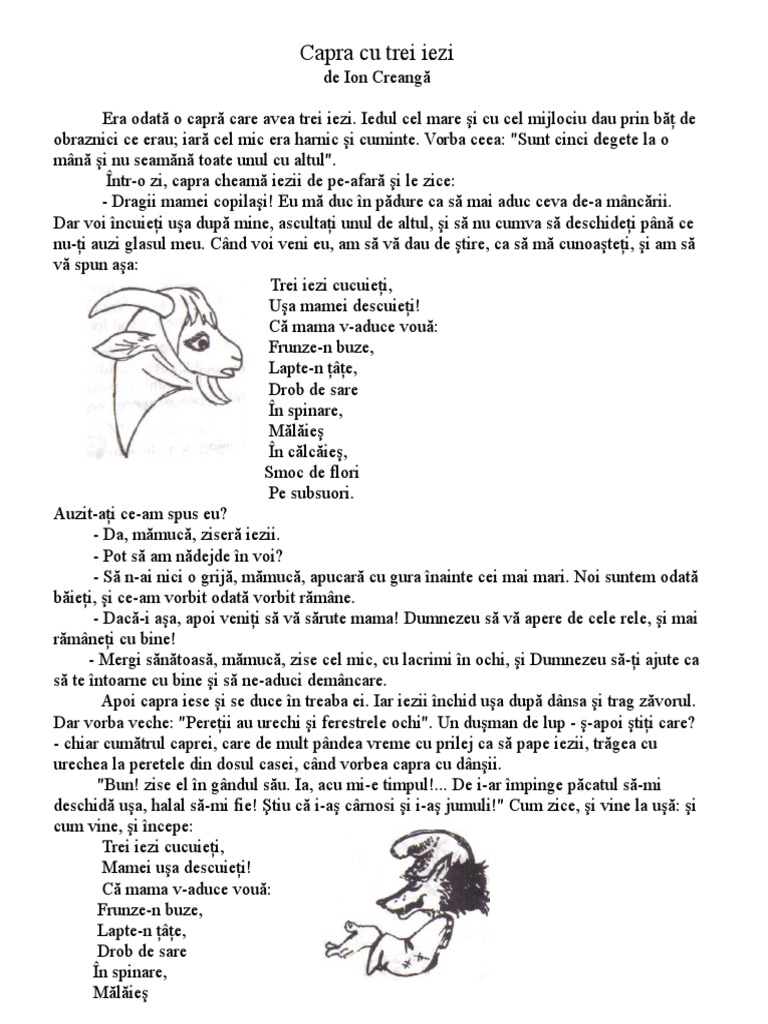 Capra Cu Trei Iezi Text Si Desene De Colorat