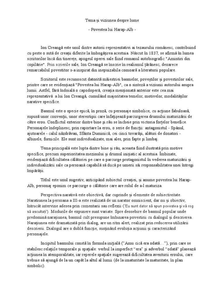 Referat Povestea Lui Harap Alb Tema Si Viziunea Despre Lume 480759 Graduo