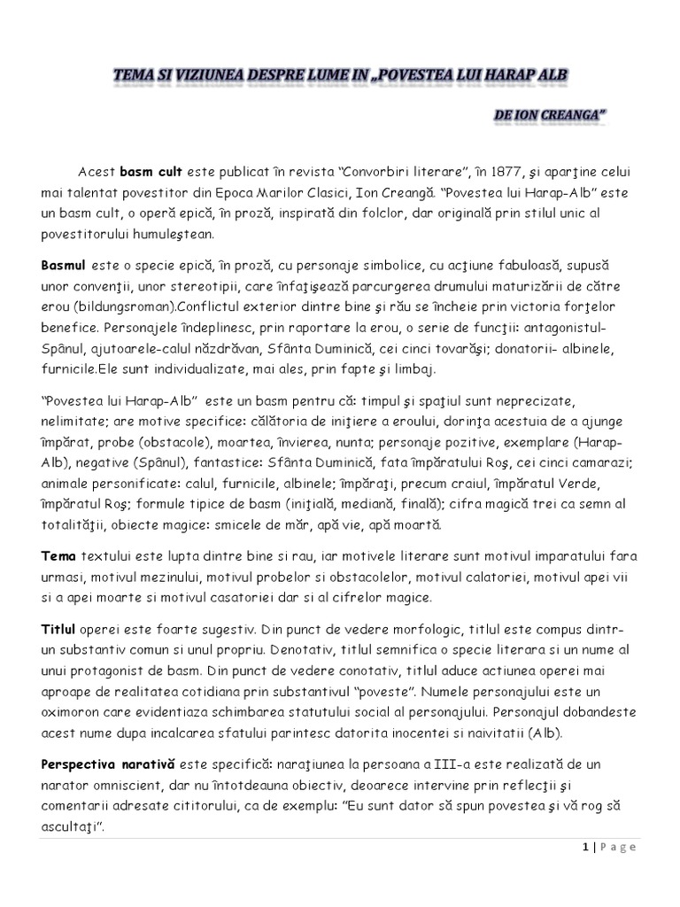 Tema Si Viziunea In Basm Cult Harap Alb Pdf Free Download