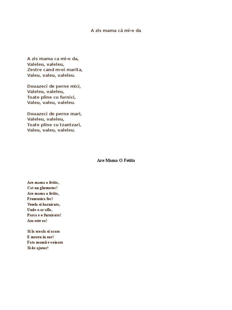 Poezii Copii Si Cantecele