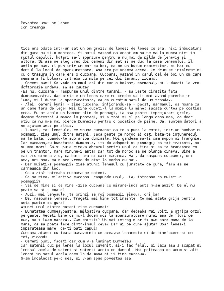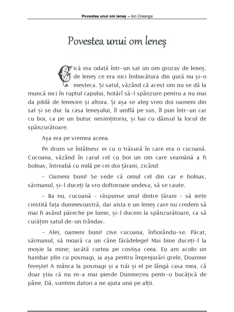 Povestea Unui Om Lenes Ion Creanga Download Documents