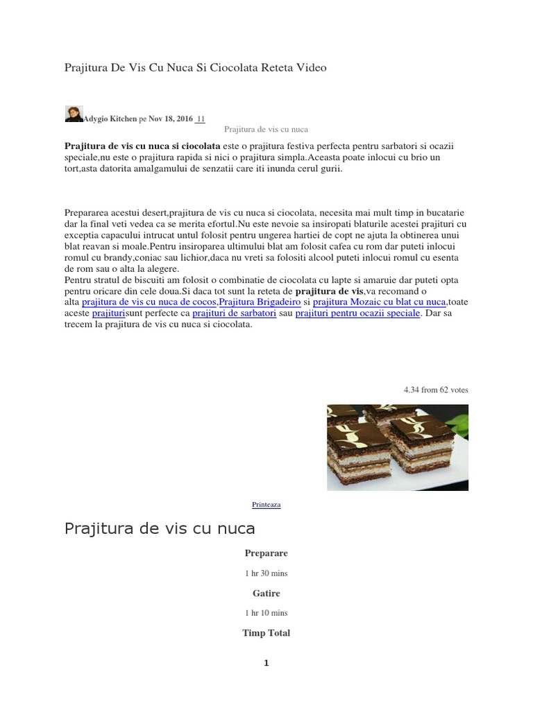 Prajitura Cu Nuca Prajituri De Casa Adygio Kitchen