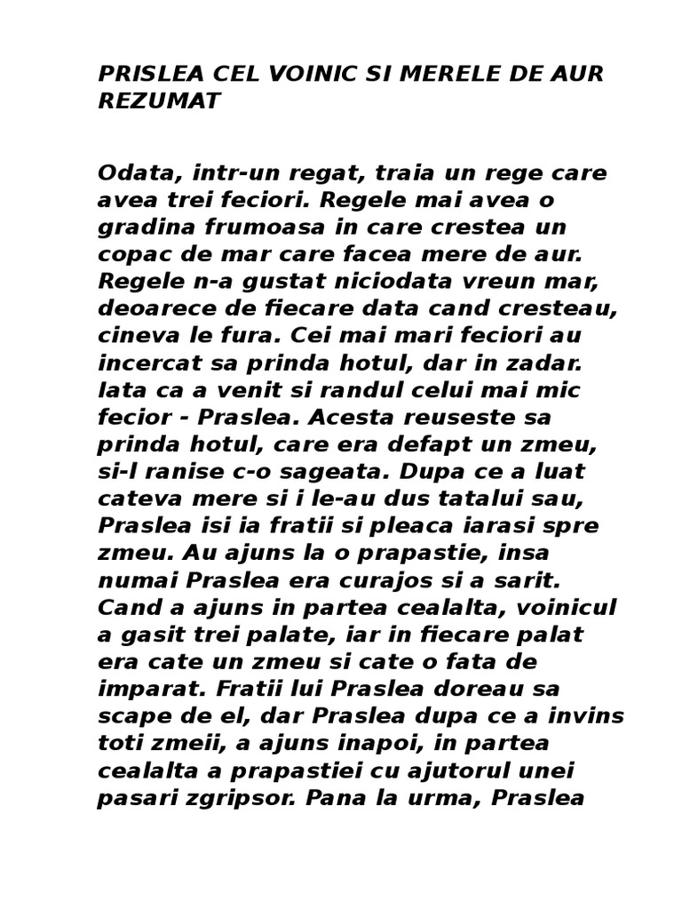 Prislea Cel Voinic Si Merele De Aur Rezumat