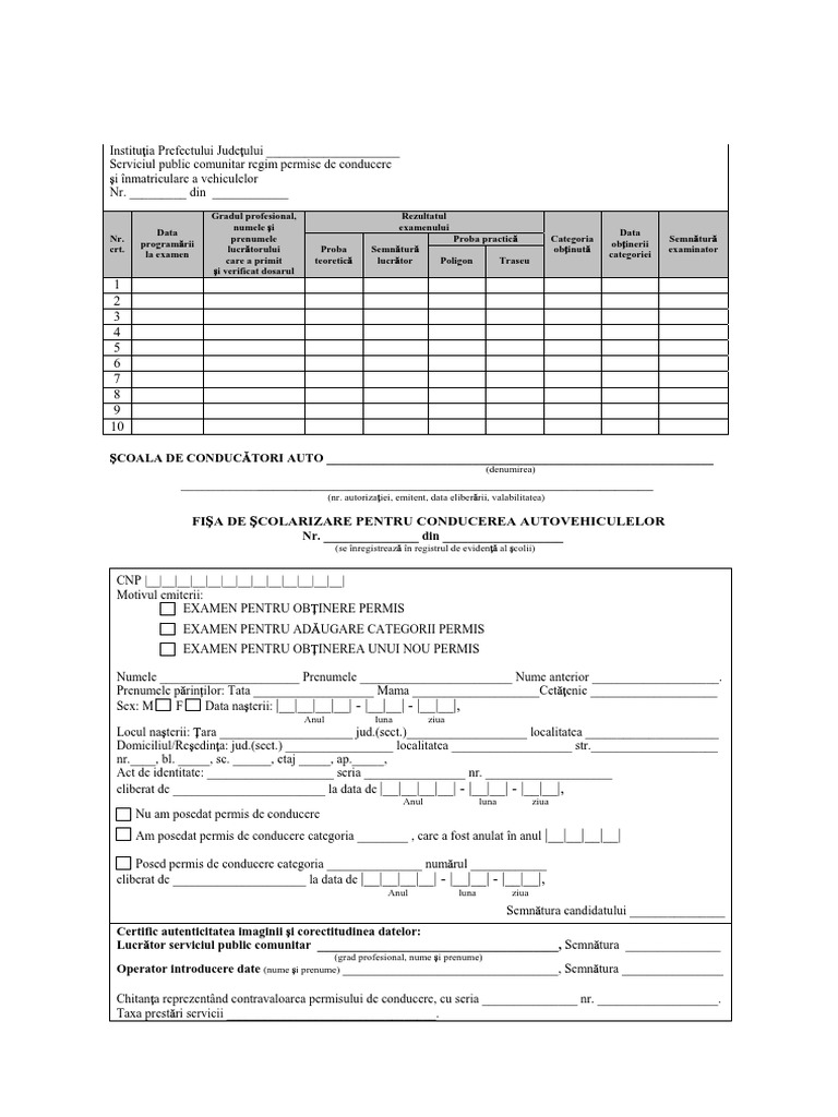 Fisa De Scolarizare Pentru Conducerea Vehiculelor