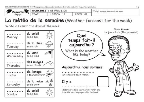 French Y4 5 At School The Days Of The Week Les Jours De La Semaine Weather Forecast For The Week Teaching Resources