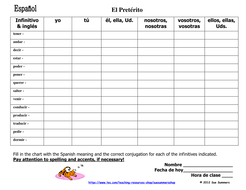 Spanish Preterit Verb Chart 14 Irregular Preterit Verbs Teaching Resources