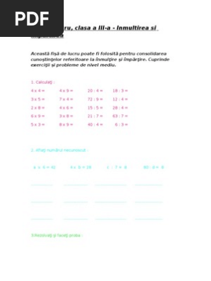 Fisa De Lucru Clasa A Iiia Inmultirea Si Impartirea Qvnd6jyg5r4x