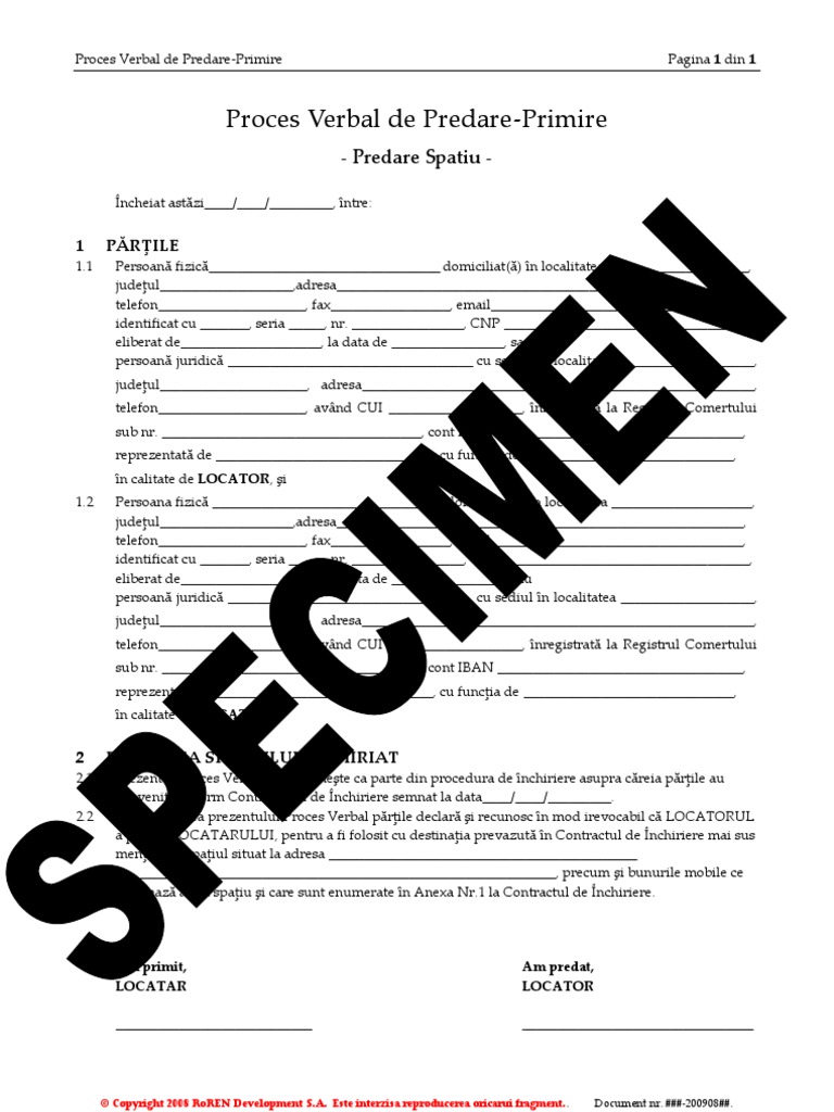 Contract Inchiriere Proces Verbal Predare Spatiu