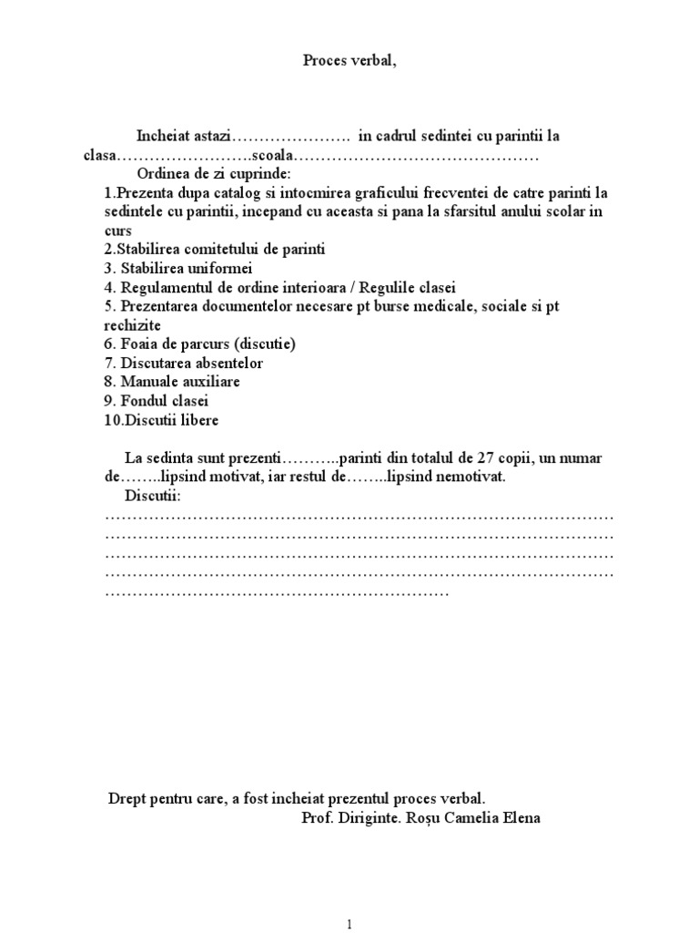 Model De Proces Verbal Pentru Sedintele Cu Parintii Motivație Model Părinți
