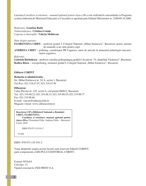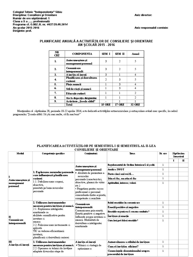 Curriculum la decizia școlii limbă și comunicare matematică și științe ale naturii om și societate tehnologii consiliere si orientare. Utilizarea adecvată a informaţiilor în propria activitate pentru obţinerea. Programa consiliere și orientare gimnaziu mec 2006 tabel 2. Consiliere şi orientare cd pentru învăţământul profesional de stat clasele a ix a a x a a xi a 3 în elaborarea acestei programe au fost valorificate o serie de recomandări cuprinse în documente.