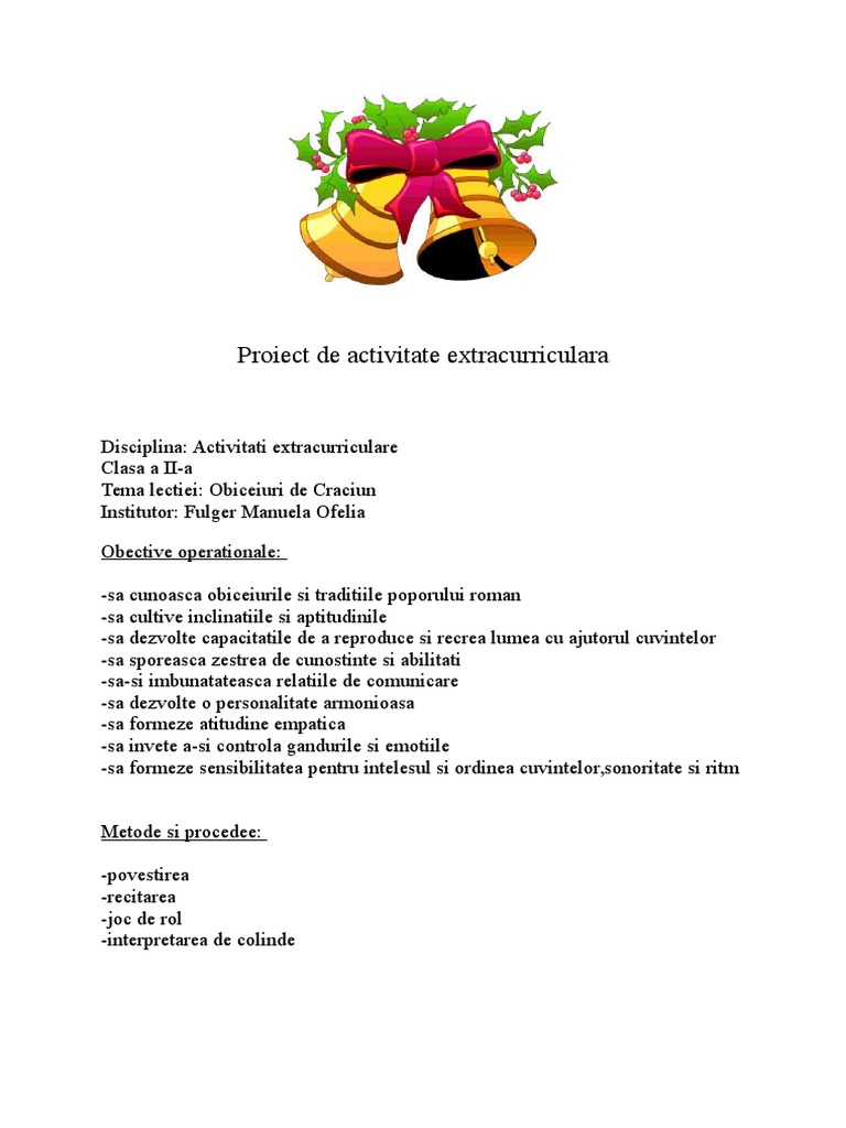 Proiect De Activitate Extracurricular A Pdf Document