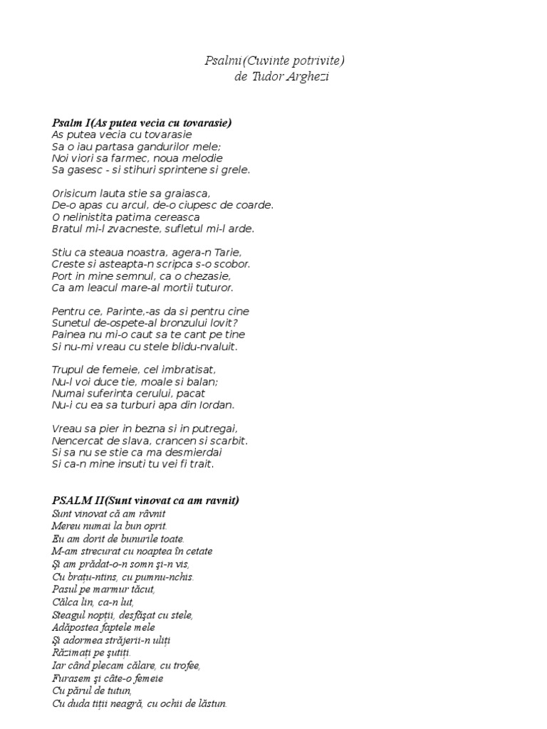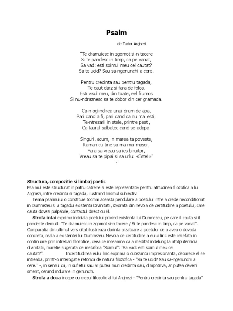 Referat Psalmi De Tudor Arghezi 330871 Graduo