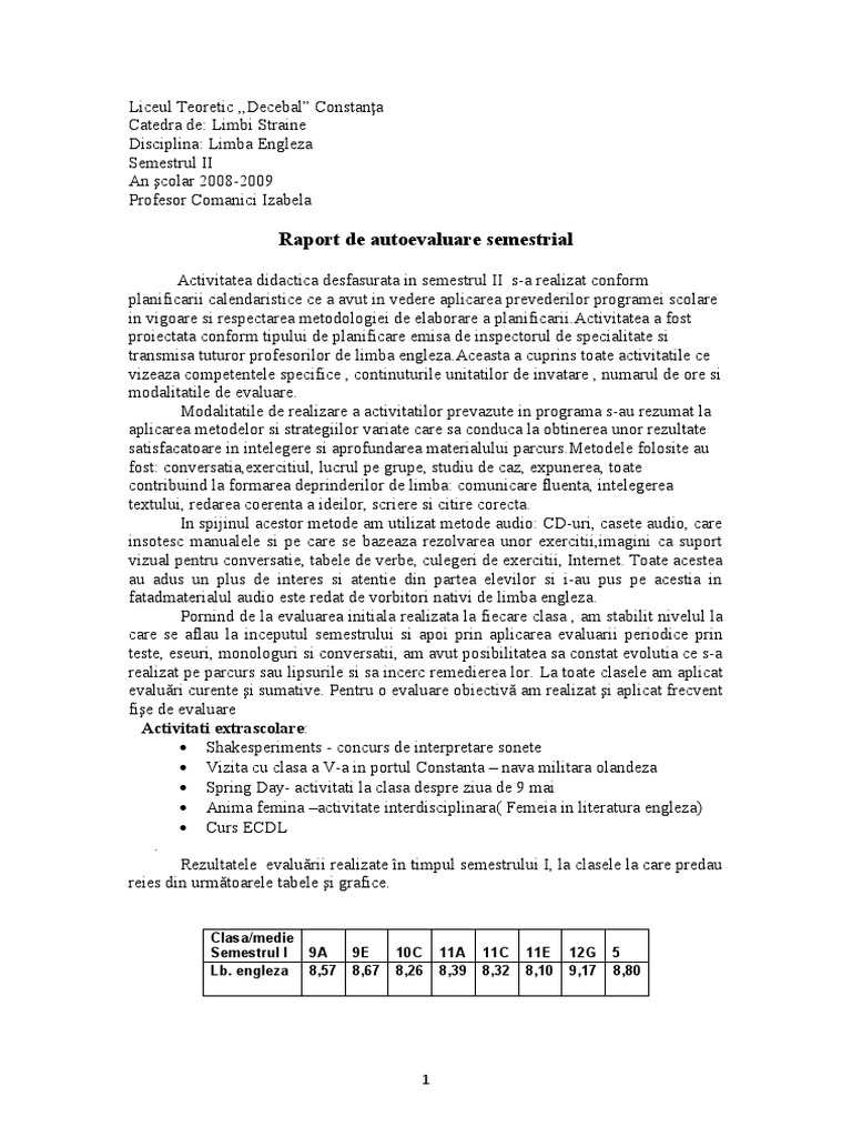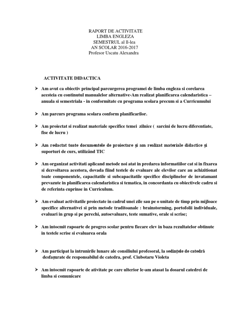 Doc Raport De Activitate 2011 2012 Sem 1 Limbi Moderne 1 Oana Anghel Academia Edu