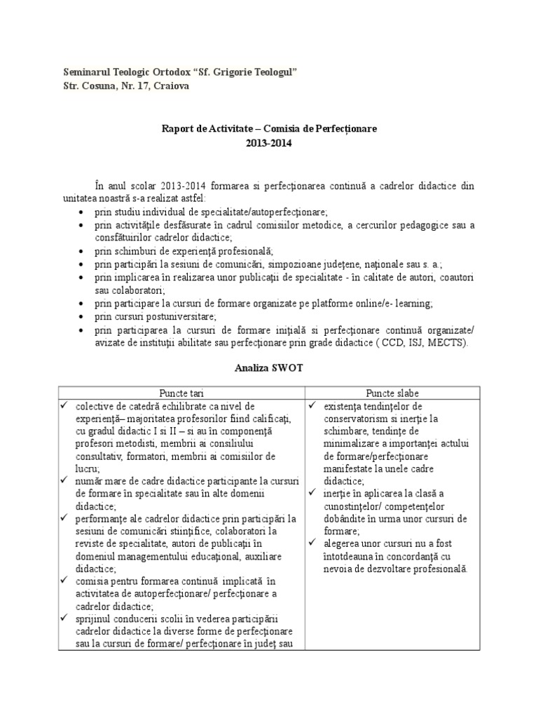 Raport Comisie Sem I Elena Pislar Academia Edu