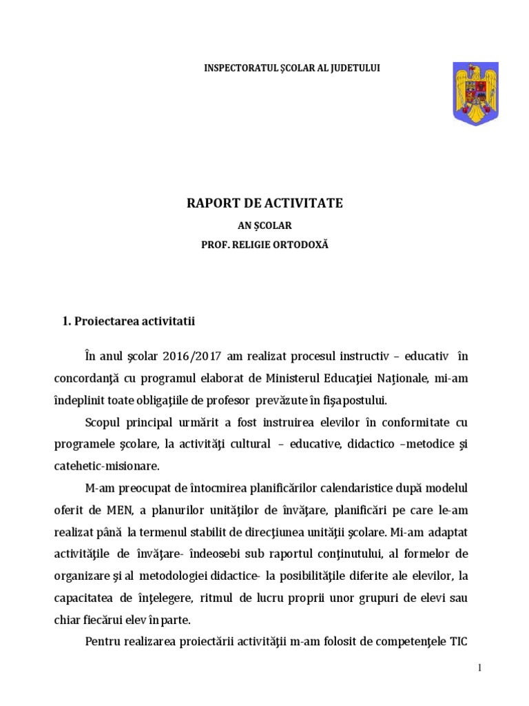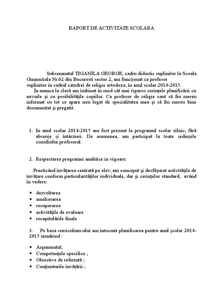 Raport De Activitate Profesor Religie Ortodoxa 2014