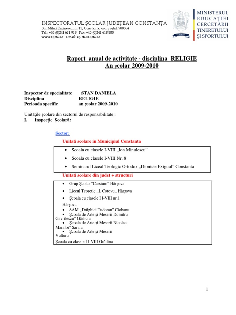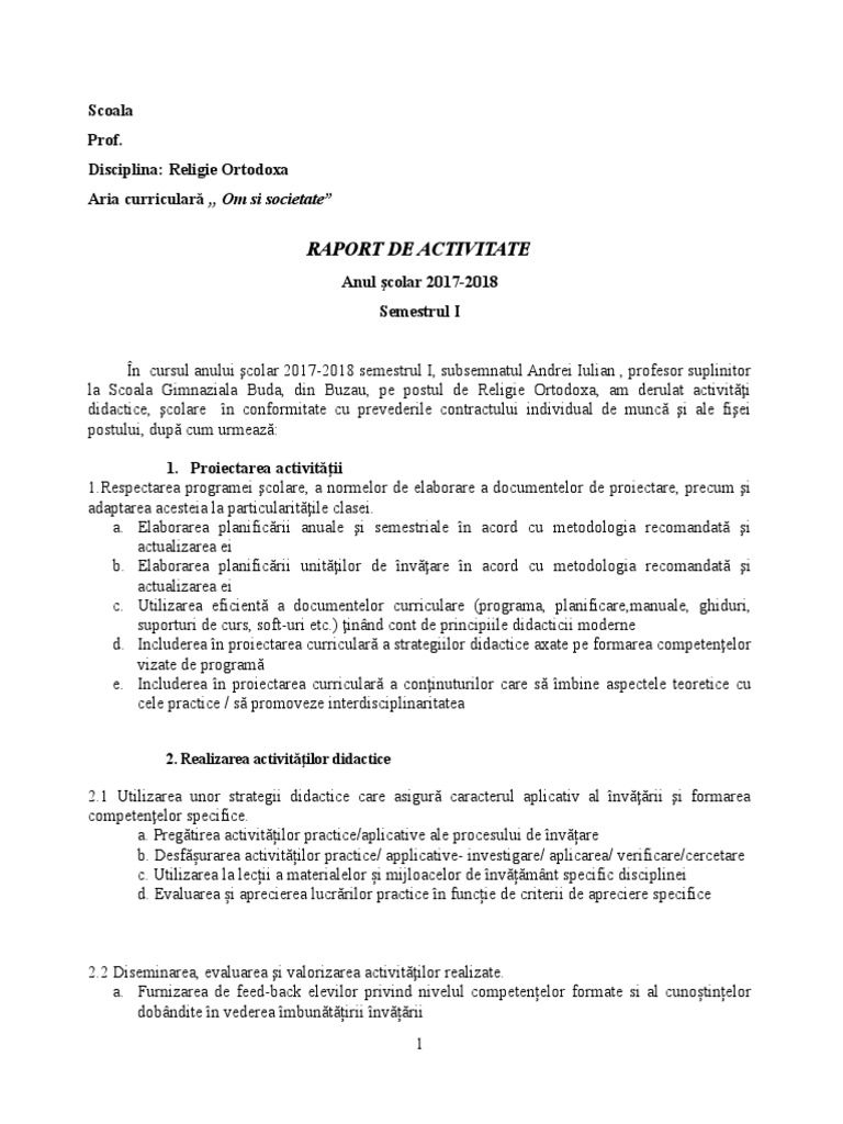 Raport De Activitate Religie