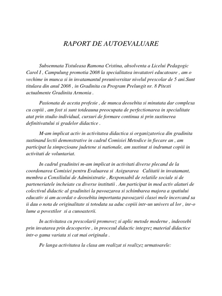 Raport De Autoevaluare A Cadrului Didactic Limba Romana