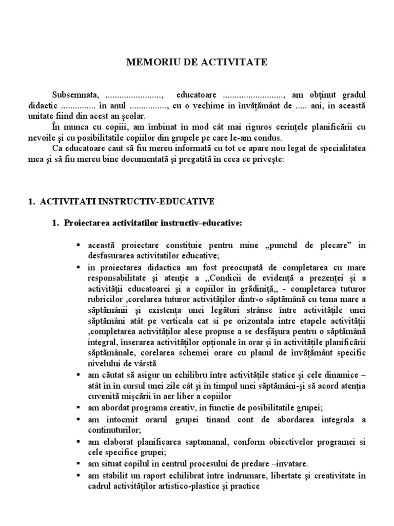 Model Raport De Activitate Gradinita
