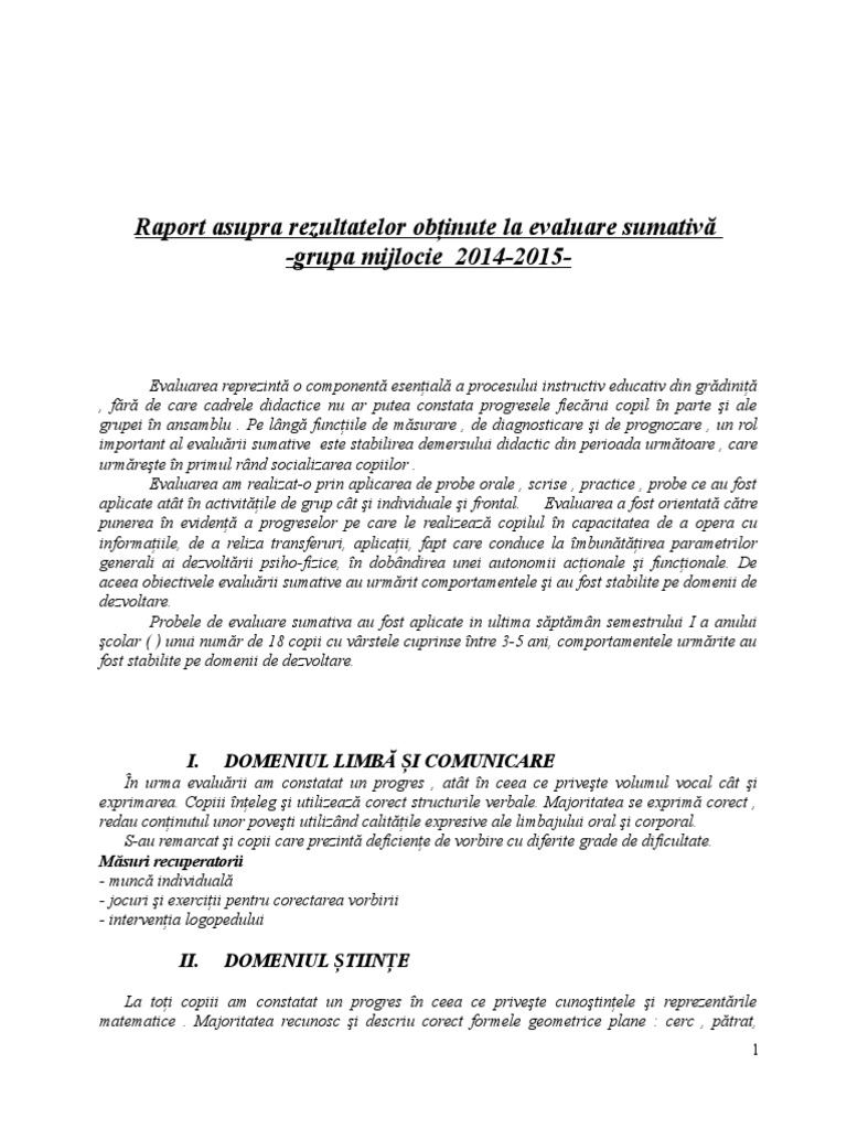 Raport Evaluare Initiala Grupa Combinata Pdf Free Download