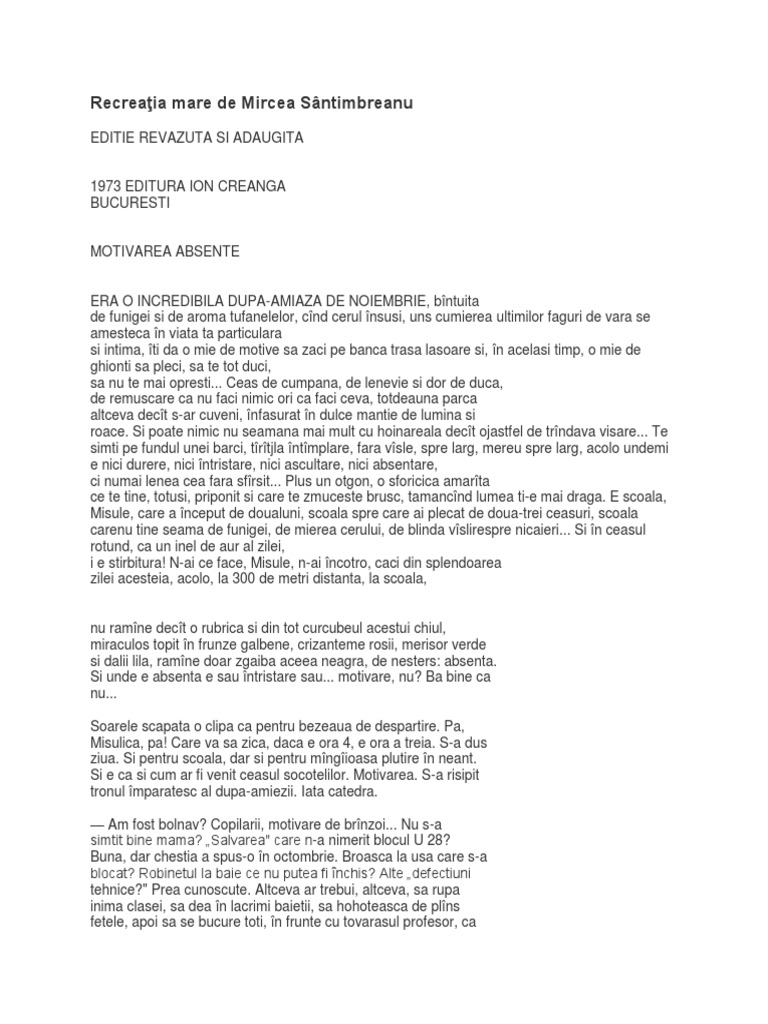Recreatia Mare Mircea Santimbreanu Pdf Document