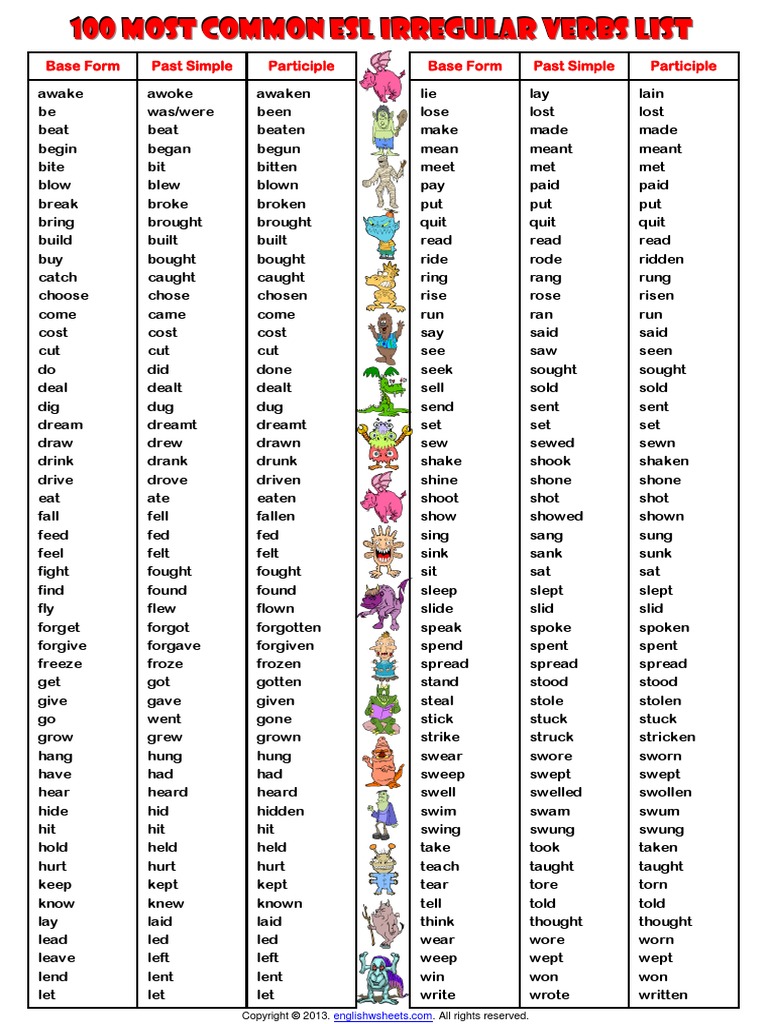 100 Most Common Esl Irregular Verbs List Pdf Docdroid