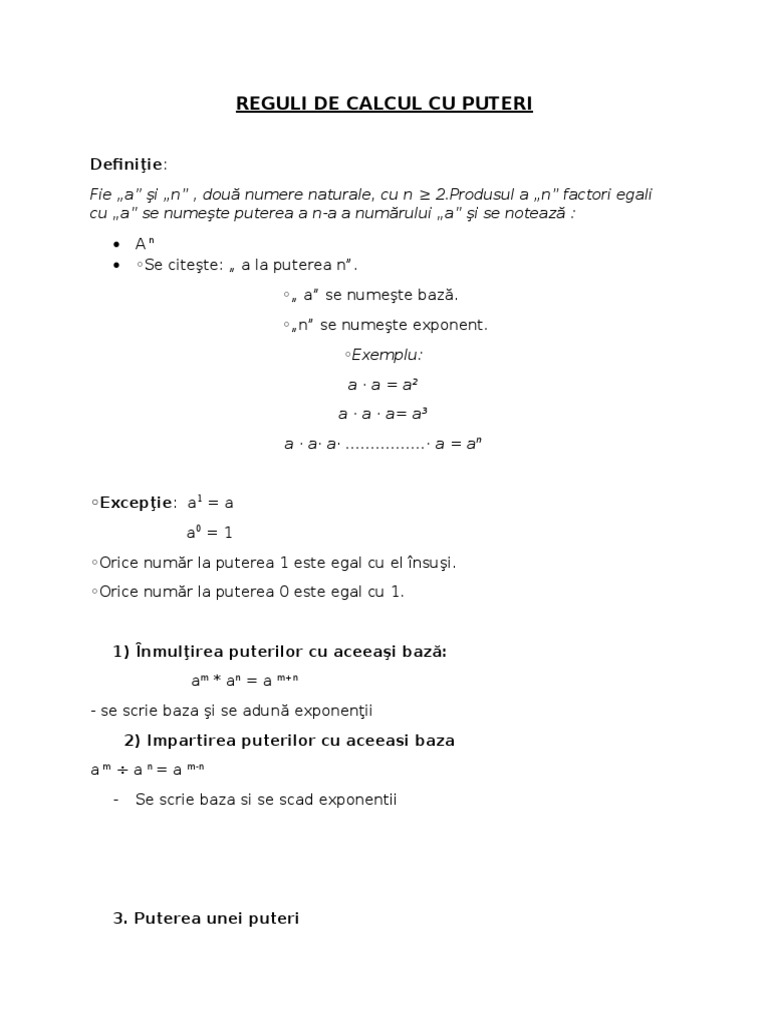 Reguli De Calcul Cu Puteri