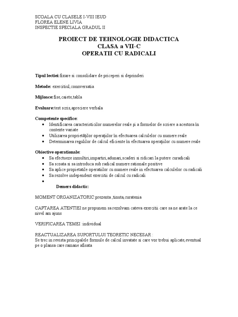 Infoinvatamant Calcule Cu Radicali