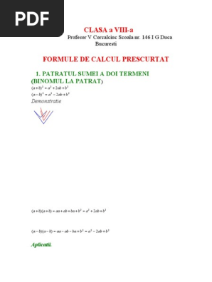 Formule De Calcul Prescurtat Matematica Mai Usoara