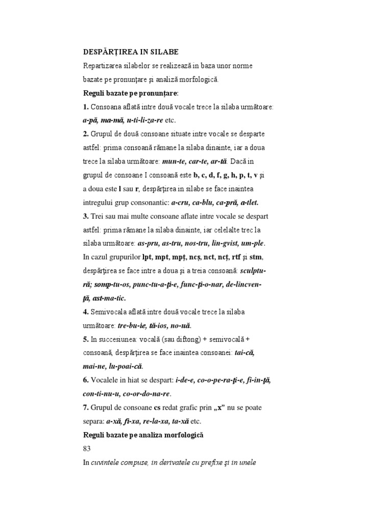 Reguli De Despartire A Cuvintelor In Silabe Silabe