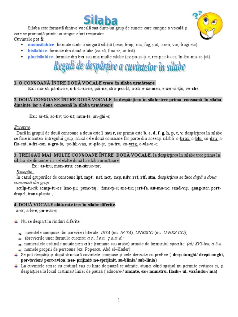 Ora De Romană Reguli De Despărţire In Silabe Transcrierea Fonetică