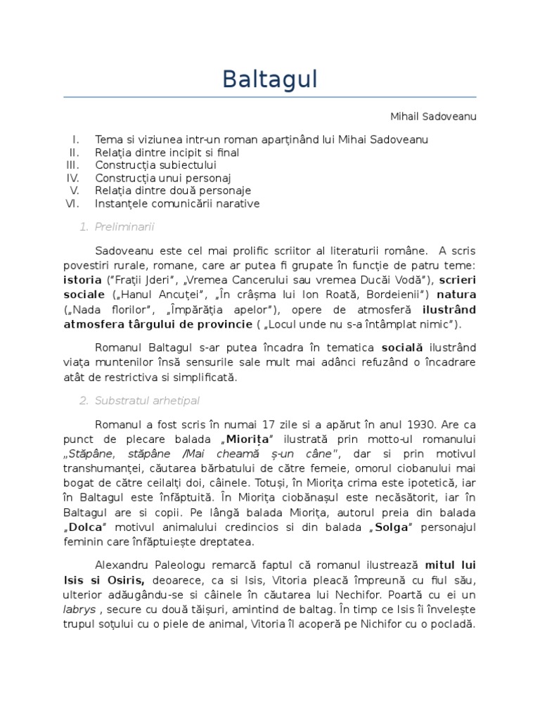Doc Baltagul De Mihail Sadoveanu Tema și Viziunea Relatia Dintre Personaje Andreea Elena Academia Edu