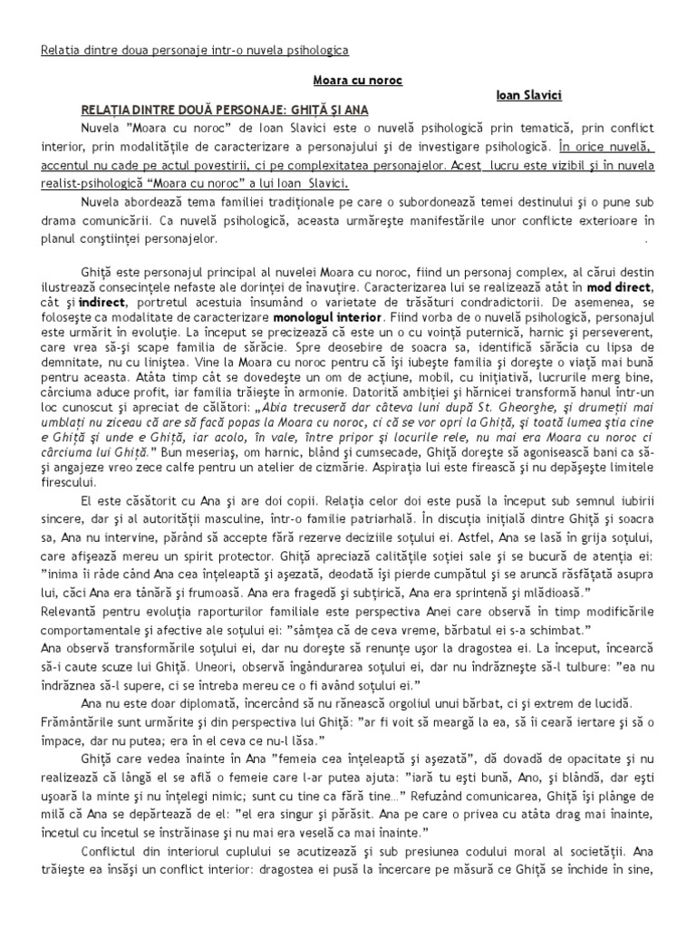 Varianta 14 relatiile dintre doua personaje intr o nuvela de ioan slavici. Relatia dintre doua personaje ghita si ana moara cu noroc de ioan slavici.