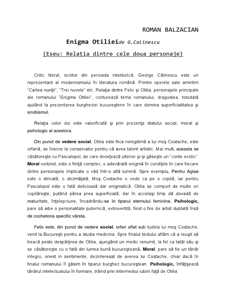 Scrie un eseu de 2 3 pagini despre relatiile dintre doua personaje ale unui roman al experientei studiat apartinand perioadei interbelice. Incadrarea scriitorilor operelor sau a scriitorului in perioada literara. Funda pentru a face un eseu in care sa surprindeti relatia sau paralela dintre doua personaje literare trebuie sa urmati urmatoarea schema. Eseu despre relatiile dintre doua personaje ale unui roman al experientei studiat apartinand perioadei interbelice.