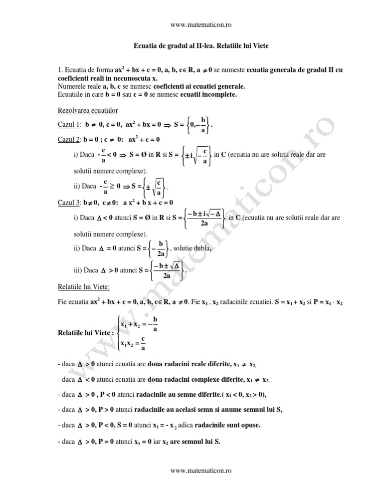 Ecuatii De Gradul Al Ii Lea Relatiile Lui Viete Referatele Net 1