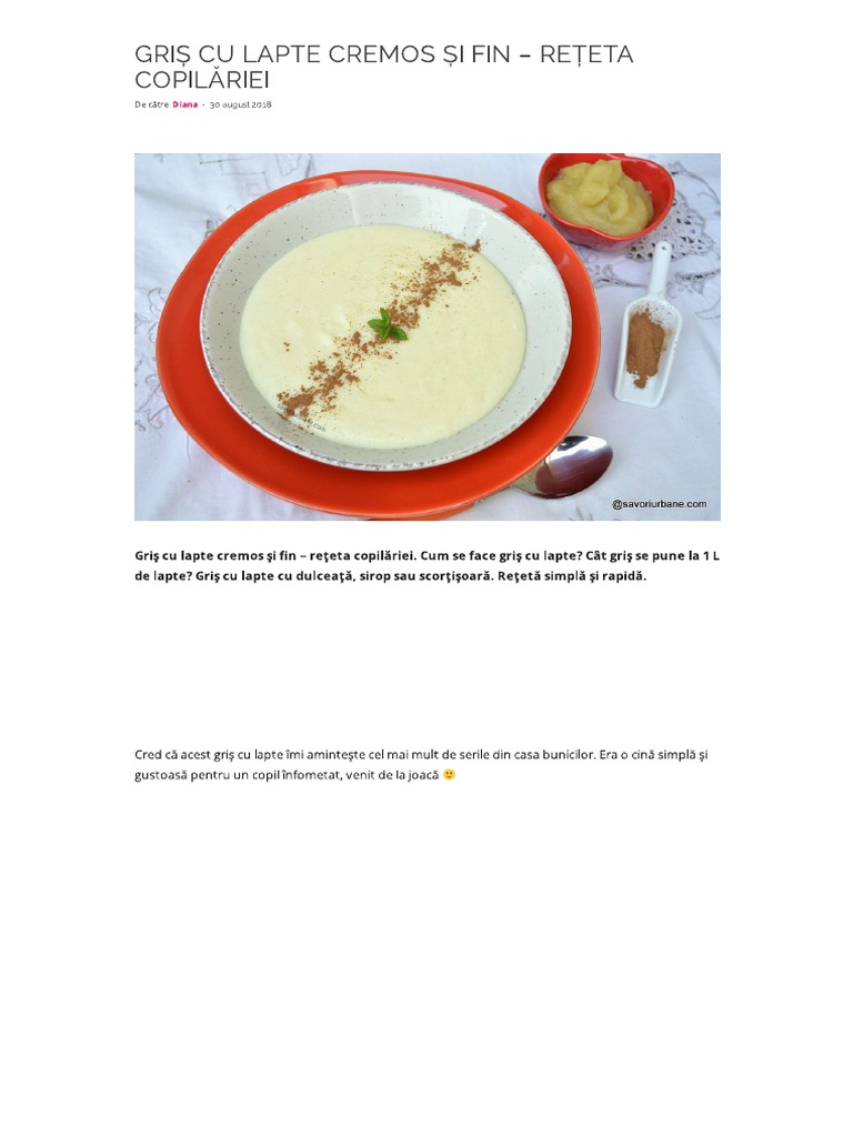 Reteta Gris Cu Lapte Savori Urbane
